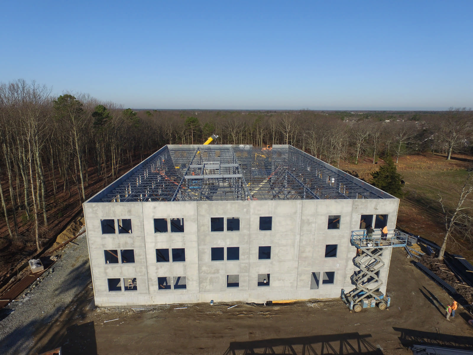 The facility represents one of the first educational facilities built with tilt-up concrete construction in New Jersey. The building was originally planned for construction with steel frame steel stud. When the owner was introduced to the tilt up system, he was sold by the ability to achieve a complete building shell within a faster construction schedule. The building shell was completed in only 10 weeks.