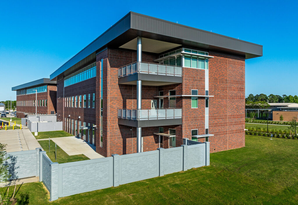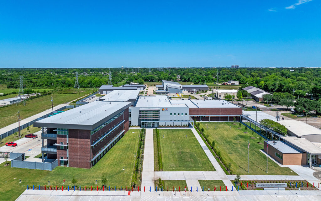 The Baytown Public Safety Building is a three-story, 57,013-square-foot facility located in Baytown, Texas that consolidates police administration, fire department offices, and the city’s Emergency Operations Center into a single structure. Recognized with an Excellence in Achievement award, the project serves as a case study in applying tilt-up construction to a critical civic facility where operational continuity, environmental resilience, and phased execution were primary drivers of decision-making.