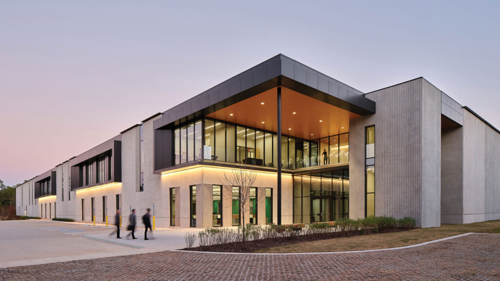 Designed around the realities of schedule, cost, and regulatory control, tilt-up panels are used as modular, high-performance enclosure elements—illustrating how delivery-system clarity enables sophisticated architectural outcomes in advanced manufacturing environments. Photo: Keith Isaacs Photography