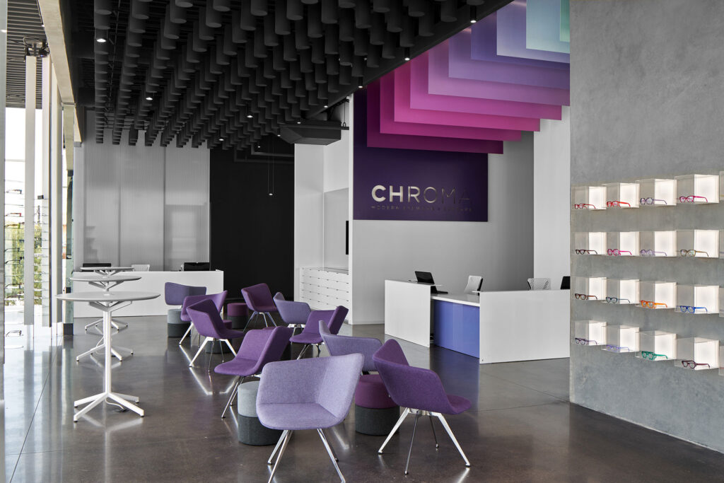 CHROMA is a modern eyewear and eyecare facility located along Montgomery Street in Fort Worth, Texas, adjacent to the city’s Cultural District and directly across from a new multipurpose arena. Conceived as both a clinical optometry practice and a retail environment, the project was recognized with an Excellence in Achievement Award in 2022. While modest in scale at 5,600 square feet, the building offers a clear case study in how tilt-up construction can be strategically applied to small, design-intensive commercial projects with demanding programmatic, site, and budget constraints.