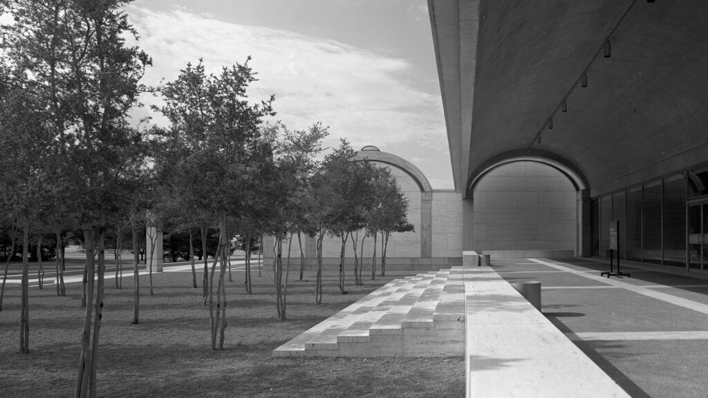 Threshold condition at the Kimbell Art Museum, where movement from shelter to light is both defined and inevitable. Photograph by Balthazar Korab, courtesy of the Library of Congress.