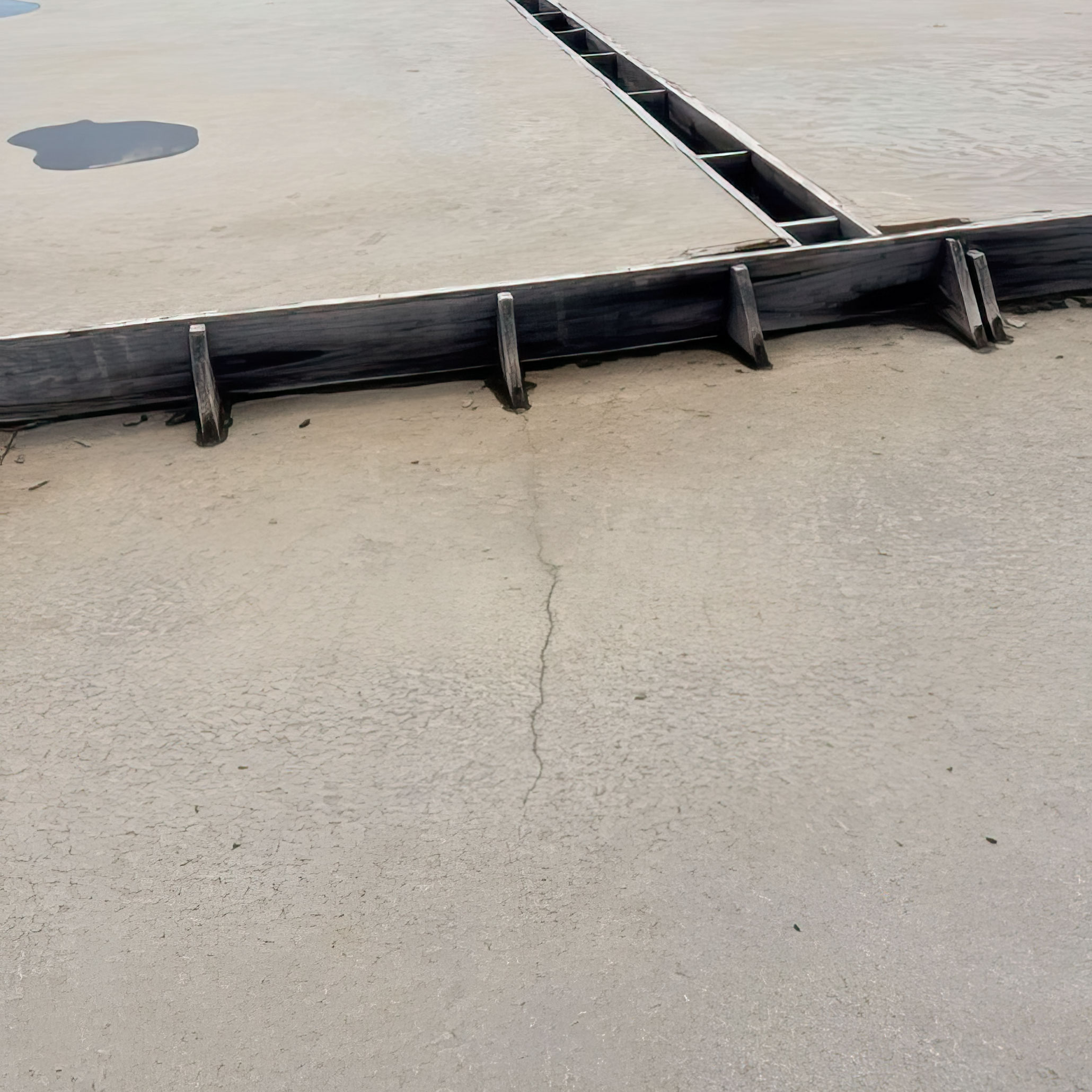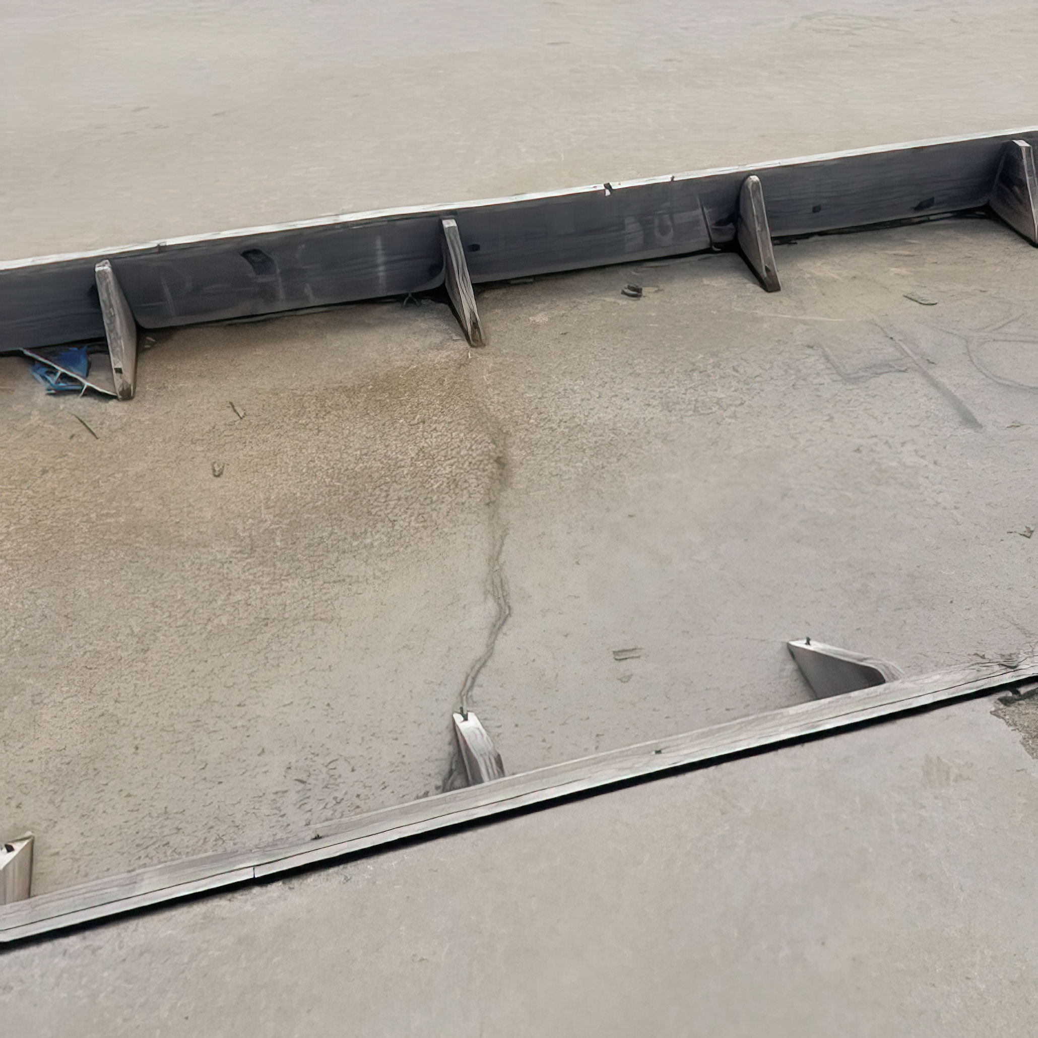Environmental factors were also considered. Houston’s climate includes high temperatures, humidity, and significant annual rainfall. Portions of the slab that were beneath panels were shielded from ultraviolet exposure and temperature fluctuations, while adjacent exposed slab areas experienced greater environmental variation. This differential exposure may have resulted in nonuniform volumetric changes, potentially contributing to cracking adjacent to panels. A comparable condition exists where interior slabs transition to exterior slabs; this is where construction joints are commonly provided to accommodate differential movement.