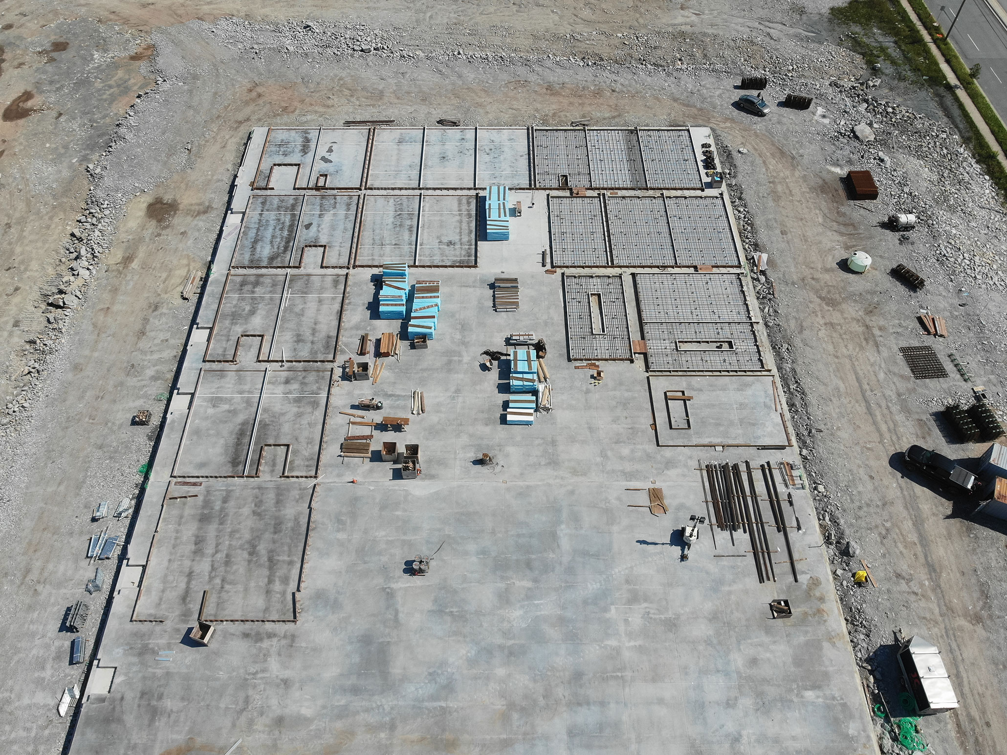 Building adjacent to operating retail facilities presented significant geotechnical and logistical challenges. Rock excavation had to proceed in small, controlled sections to mitigate vibration and noise, extending the earthwork schedule and forcing concrete placement to occur during winter conditions.
