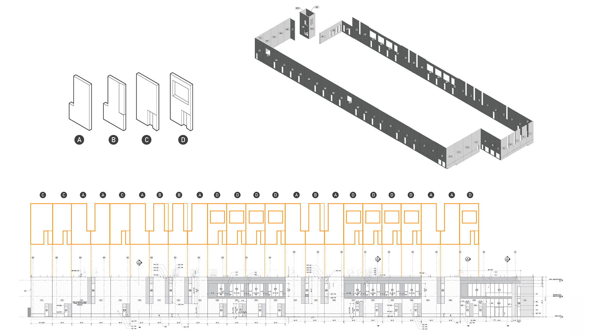 La estrategia de fachada se basó en un conjunto limitado de tipos de paneles dispuestos a través de cambios en vacíos, volúmenes y salientes para producir elevaciones variadas, mientras que las isométricas estructurales correspondientes mapearon la ubicación de cada panel, reduciendo la complejidad del diseño y minimizando el esfuerzo de cálculo durante las fases de diseño y construcción.
